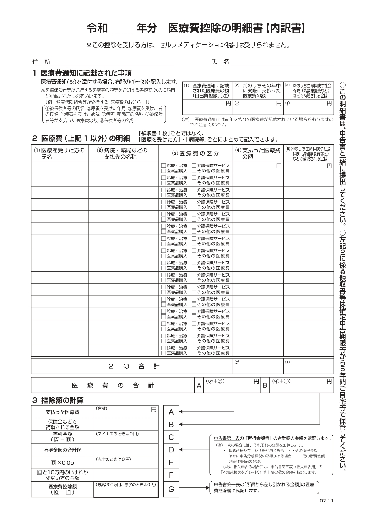 しかし、現在は領収書を集計して、「医療費控除の明細書」を作成して、確定申告書に添付が必要です。